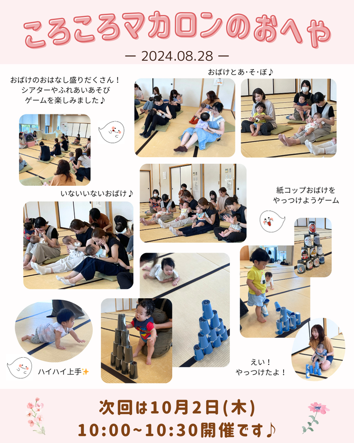 0歳から1歳までのお子さんと保護者が対象です。手遊びやダンスなど、音楽にあわせて親子一緒にスキンシップを楽しみましょう。
